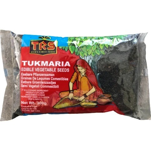 Tukmaria and sabza are another name for basil seeds. Tukmaria has a very mild flavour (rather like poppy seeds) and is generally used in light desserts thanks to its gelatinous properties when it’s soaked and swells in water.