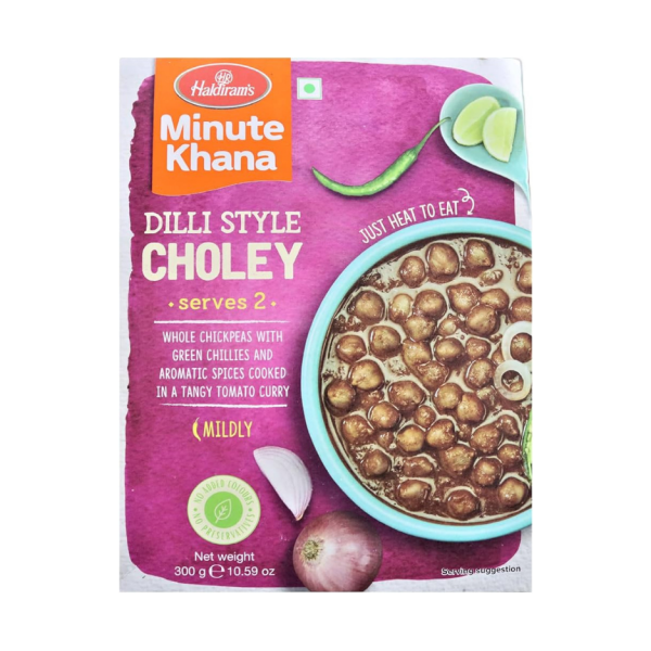 HALDIRAMS DILLI CHOLEY is flavored with coriander powder, red chilli powder, dry mango powder, cumin powder, fenugreek powder, dry ginger powder and other savory ingredients. Suitable for vegetarian. Serve with roti, naan, chapathi, basmati rice or any other way you desire. A mouth-watering recipe is provided on the back of the package.